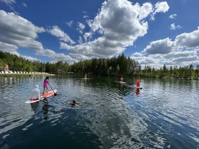 И конечно это пляжные развлечения: детская площадка, трамплин, водные горки, пляжный волейбол, в аренду можно взять спас жилеты, сапдоски, акваскипер, очки, ласты.