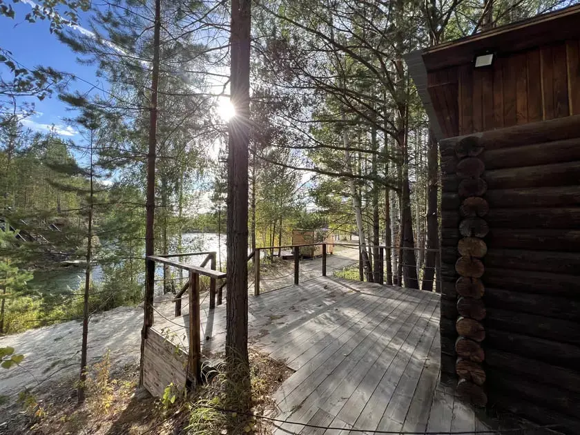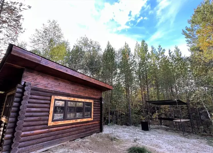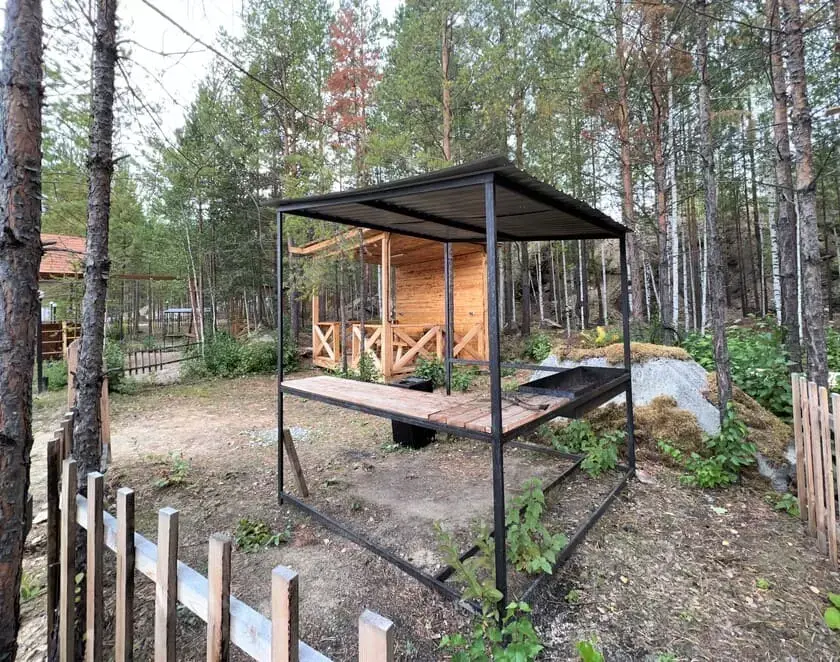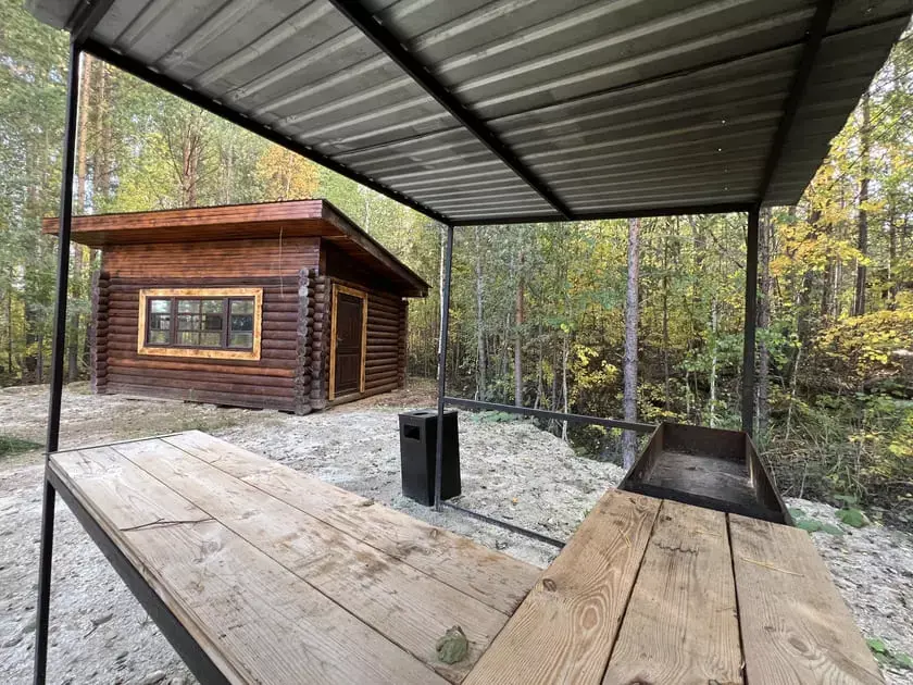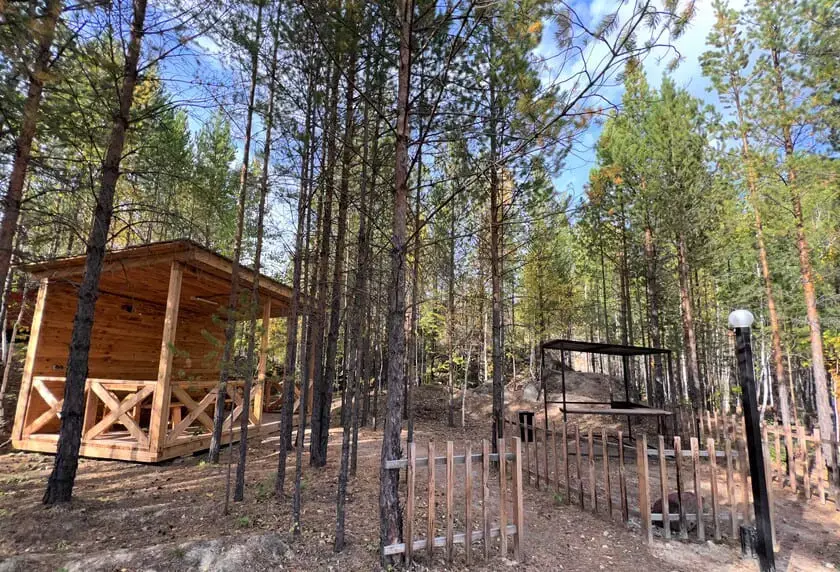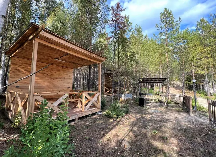 Уютные деревянные беседки расположены на берегу озера Терсутское в сосновом лесу. Каждая имеет зону барбекю для приготовления шашлыка.