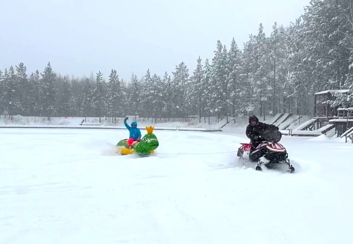 Взяв в прокат снегоход можно прикататься по лесной дороге до самого большого карьера и покататься по его глади, изучив его дикие берега.